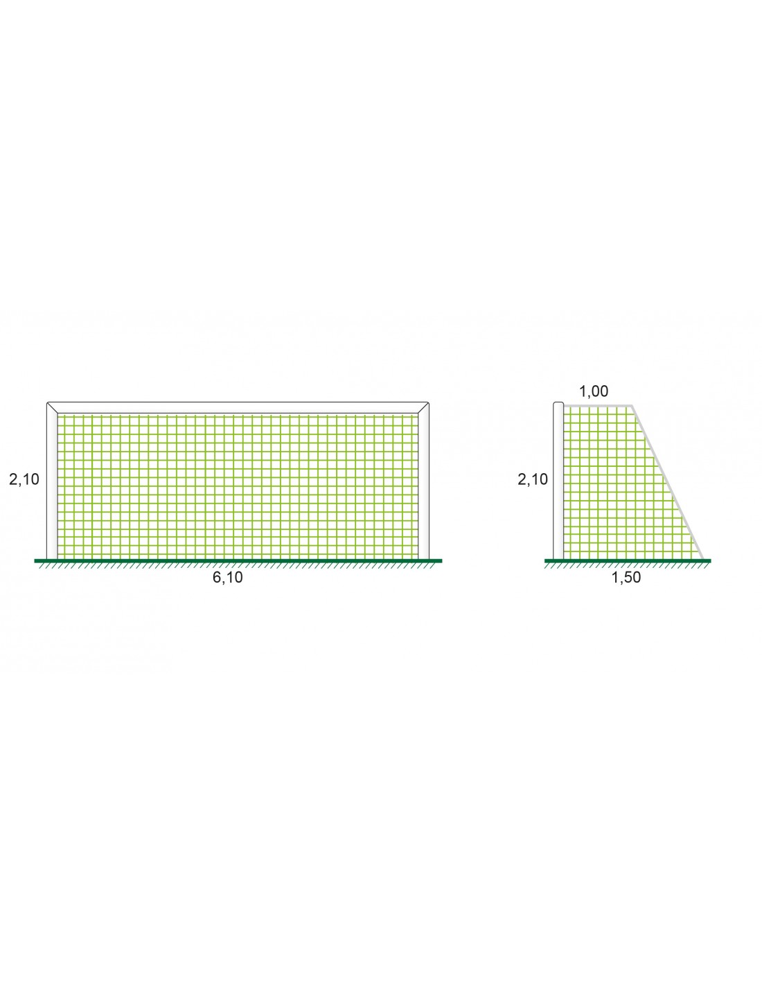 Juego de 2 redes para porterías de  fútbol 7 fabricadas con red de polipropileno de alta tenacidad, resistentes a rayos UV y alta resistencia a la tracción. Red de 3mm de grosor malla 120. Medidas:  6,10m X2,10m/1,00m X1,50m.