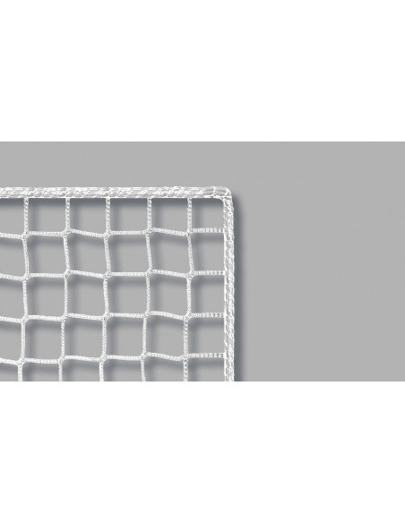 Juego de 2 redes para porterías de fútbol 7 fabricadas con red de polipropileno de alta tenacidad, resistentes a rayos UV y alta resistencia a la tracción.Terminaciones de alta clalidad con triple cosido , cordón de refuerzo y cinta de proteción textil de 25mm. Red de 3mm de grosor malla 120. Medidas: 6,15m X2,15m X 0,80m X 1,50m. Color blanco