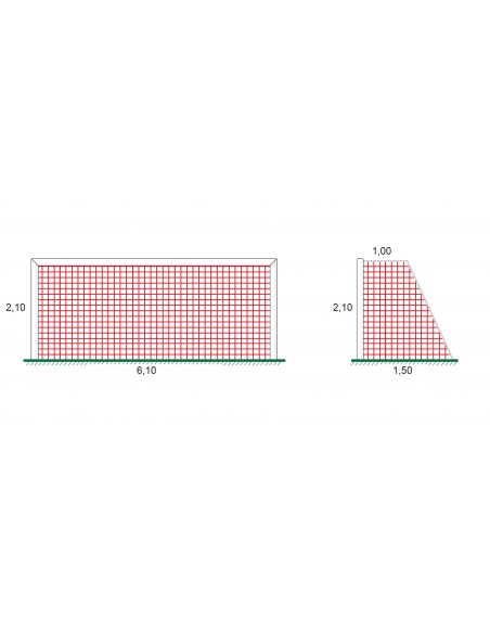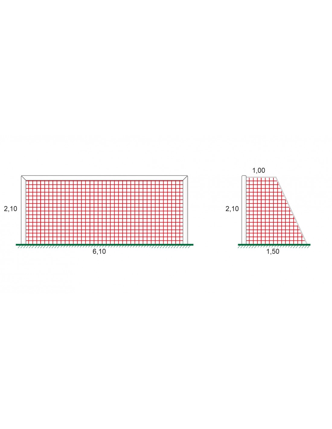 Juego de 2 redes para porterías de fútbol 7 fabricadas con red de polipropileno de 4mm de grosor malla 120. Medidas: 6,1m X 2,1m X 1m X 1,50m.