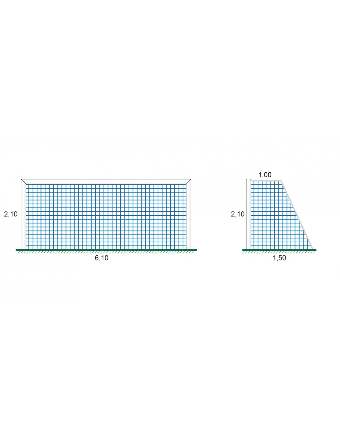 Juego de 2 redes para porterías de fútbol 7 fabricadas con red de polipropileno de 3mm de grosor malla 120. Medidas: 6m X 2m X 2m X 2m. Color blanco