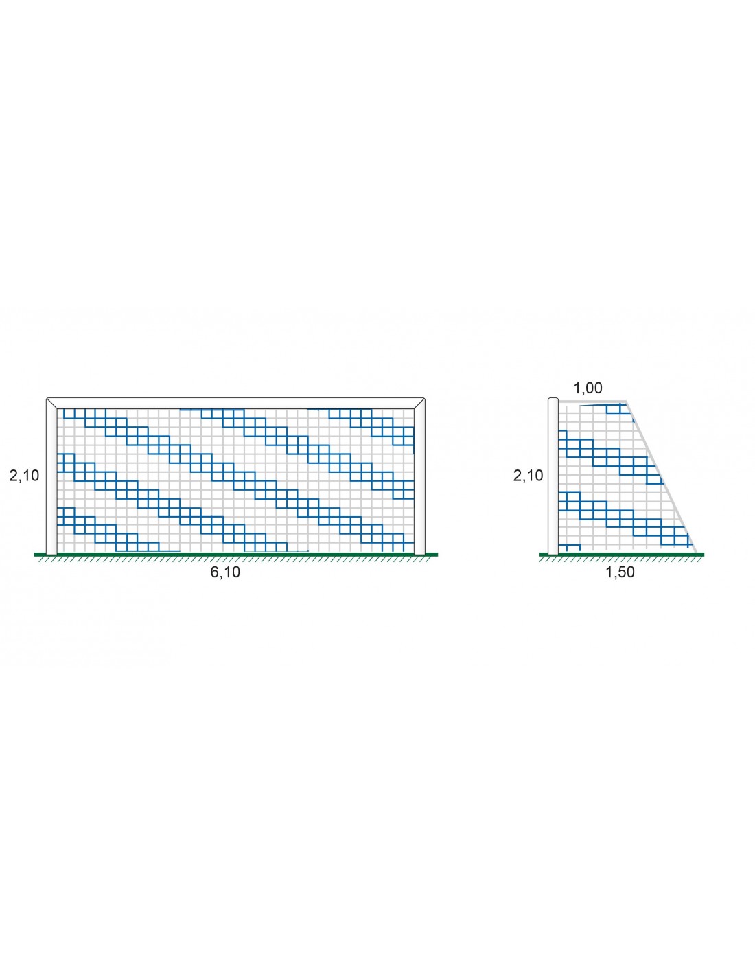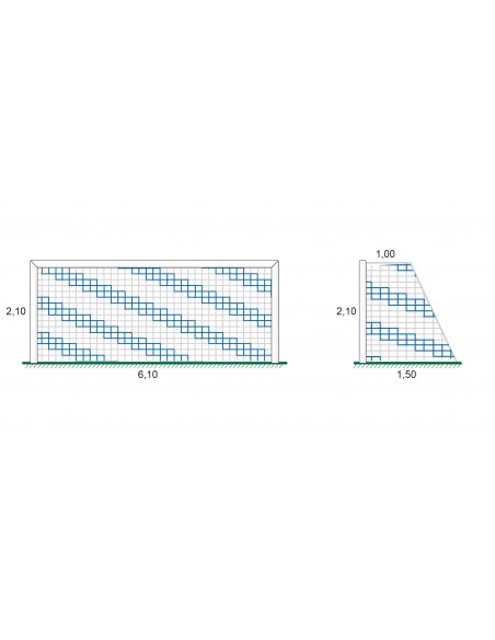 Juego de 2 redes para porterías de fútbol 7 fabricadas con red de polipropileno de 4mm de grosor malla 120. Medidas: 6,1m X 2,1m X 1m X 1,50m.