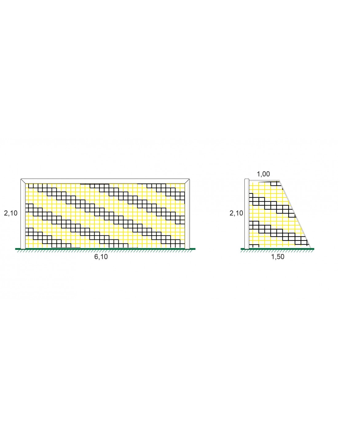 Juego de 2 redes para porterías de fútbol 7 fabricadas con red de polipropileno de 4mm de grosor malla 120. Medidas: 6.0X2.0/2.00X2.50 m.-Red sin nudos- Redes fabricada al cuadro.- Acabados: La red está reforzada por todo el perímetro con cuerda de 4mm, cinta de recubrimiento y cosido overlock de 3 hilos de 5000 deniers.- Instalación: Instalación rápida y...