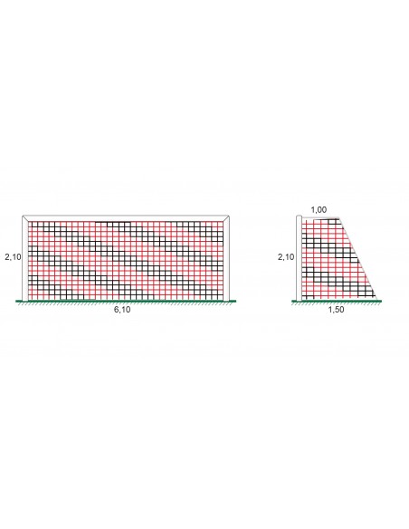 Juego de 2 redes para porterías de fútbol 7 fabricadas con red de polipropileno de alta tenacidad, resistentes a rayos UV y alta resistencia a la tracción. Red de 3mm de grosor malla 120. Medidas: 6,10m X2,10m/1,00m X1,50m.