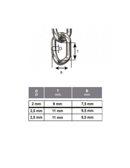 Cadena redondeada con eslabones de acero niquelada de gran duración y versatilidad longitud 1m.