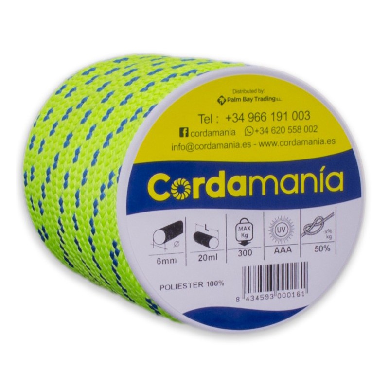Cuerda poliester 100% con camisa trenzada, muy resistente a la traccin y rozamiento, tacto suave.