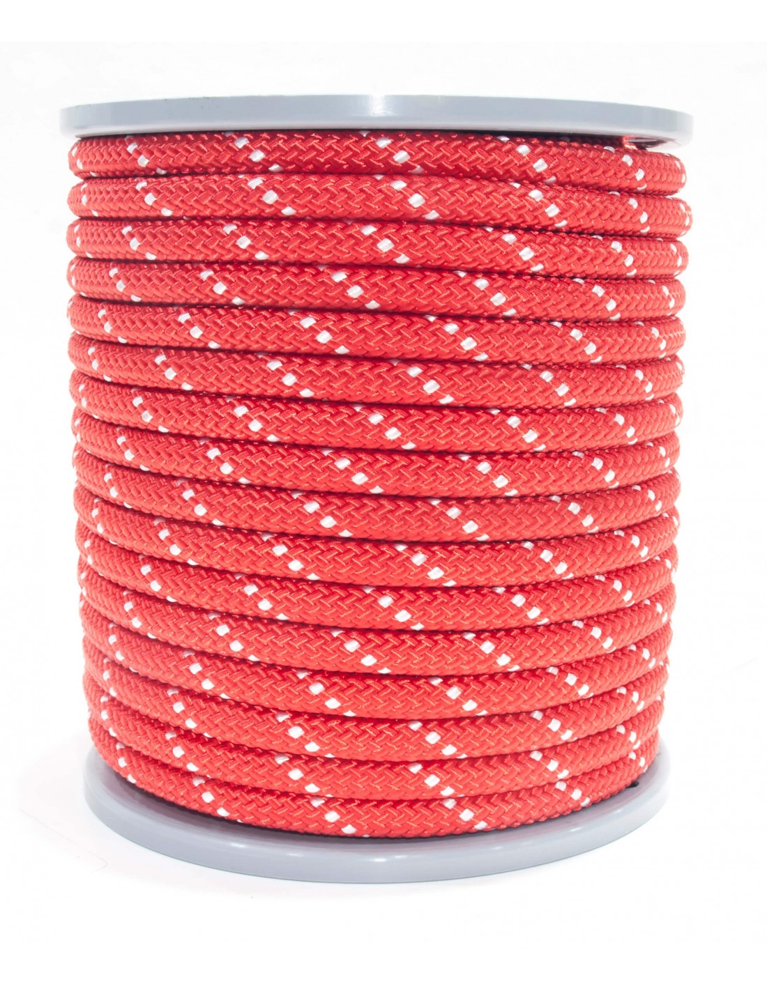 CUERDA POLIESTER 100% CON ALMA 6MM 50M ROJA PINTA BLANCA