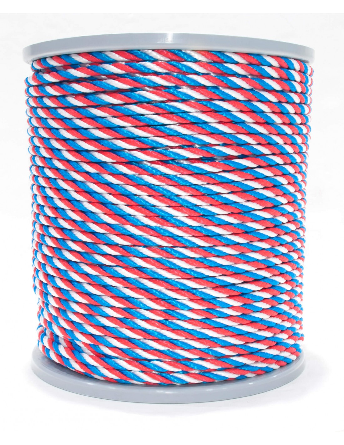CUERDA POLIPROPILENO CABLEADA 6MM 185M ROJA AZUL Y BLANCA