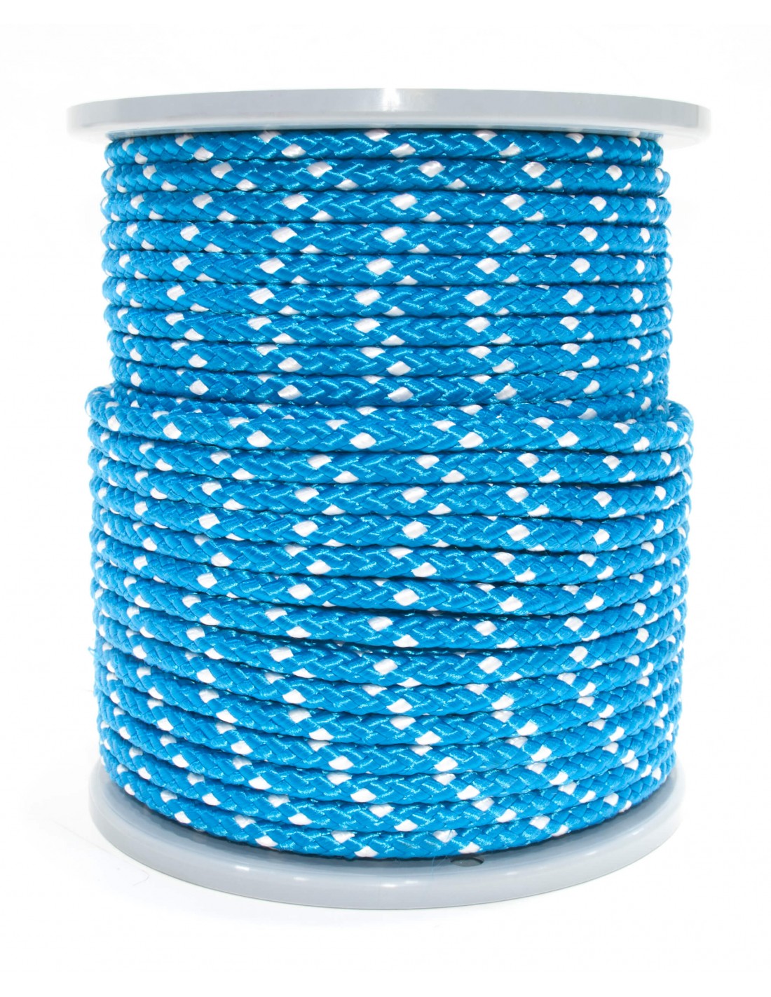 CUERDA POLIESTER TRENZADO 8MM 96M AZUL CON PINTAS BLANCAS