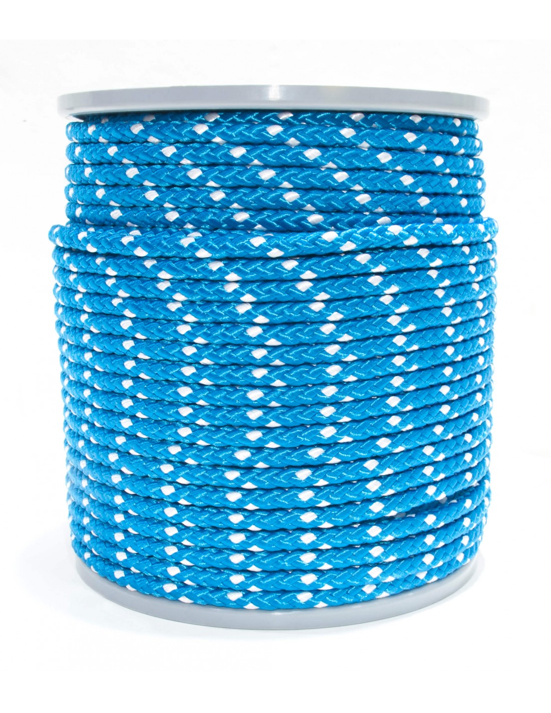 CUERDA POLIESTER TRENZADO 8MM 113M AZUL CON PINTAS BLANCAS